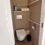 This 1-bedroom apartment is equipped with a bathroom that features hair dryers and bath sheets. A separate toilet and a shower can also be found.